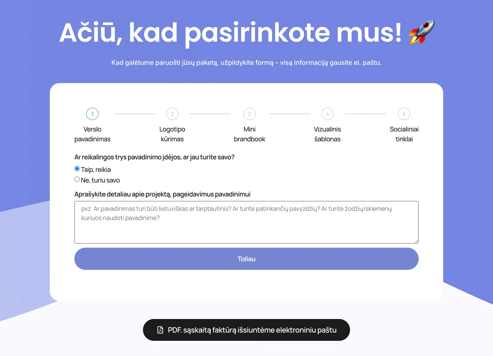 Taip, jei turite logotipą, domeną ar kitą medžiagą – integruosime juos į jūsų projektą.